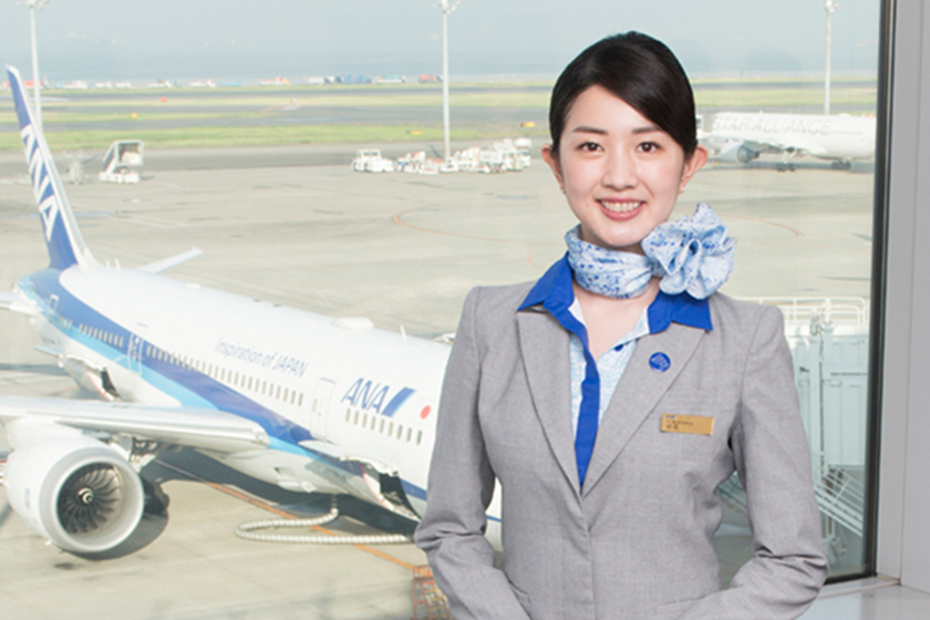 全日本空輸株式会社(ANA)勤務 客室乗務職/国際エアライン科 キャビンアテンダント専攻/2013年卒/後輩へのメッセージとして、「どんな仕事もそうですが、客室乗務員にも大変な時があります。でも、それ以上にこの仕事をしていてよかったと思える瞬間があります。いろんな国へ行ったりお客様とふれあうことで、新しい価値観を得られることもありますよ」という言葉を寄せてくれました。