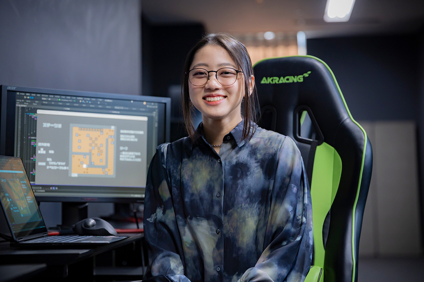 本校の体験入学でプログラミングをした際、先輩方が仕組みや実装をどうするか楽しそうに話す姿を見て、私も同じように学びたいと思いました。実践的なゲーム制作の授業が多いことも、入学の決め手になりました。
