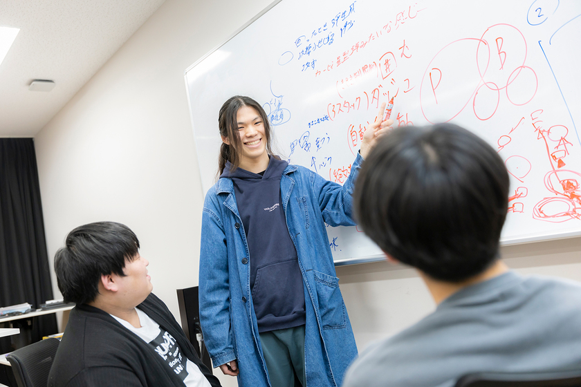 プログラミングやゲーム分析などゲーム制作に必要な基礎を学び、チームで短期開発を繰り返す経験を積んでいます。「プレイ会」では多くのフィードバックをもらい、自分では気づかなかった視点や考え方を学びました。プロの方からのアドバイスや大規模イベントに出展など、やればやった分だけ多くのチャンスが巡ってきます。