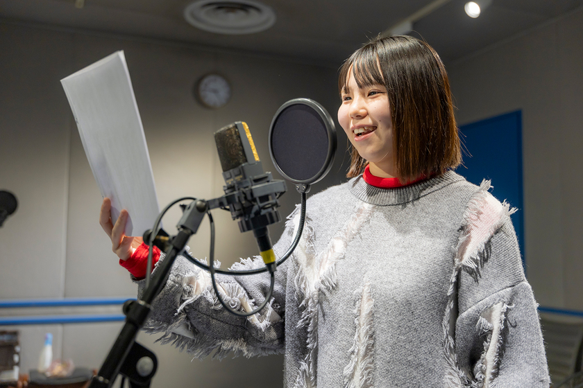 マンガ・アニメーション科が制作したアニメに声を吹き込む声優の「学内オーディション」に挑戦し、実力を試したいと考えています。女性役に加え、少年役の声も勉強中です。
