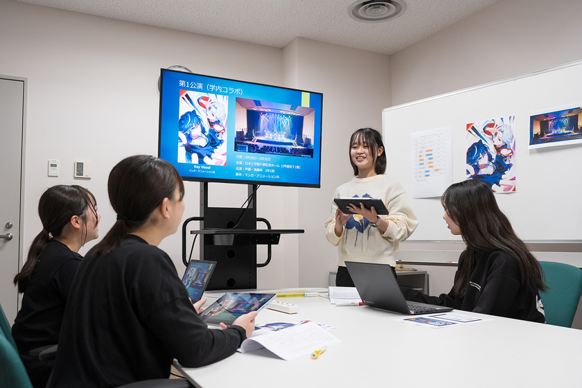 声優・演劇科との演劇公演や高校演劇サポートなど、様々な連携プロジェクトを実施しています。声優・演劇科が「演じ手」となる『コラボレーション実習』では、合同で舞台を作り、多くの公演を行います。本番に向けて一から舞台を作り上げる経験が、将来の現場で役立つ実践力につながります。また、他学科の学生と交流しながら学ぶことで、専門的なスキルだけでなく、コミュニケーション力やチームワーク力など協働する力も身につけることができます。