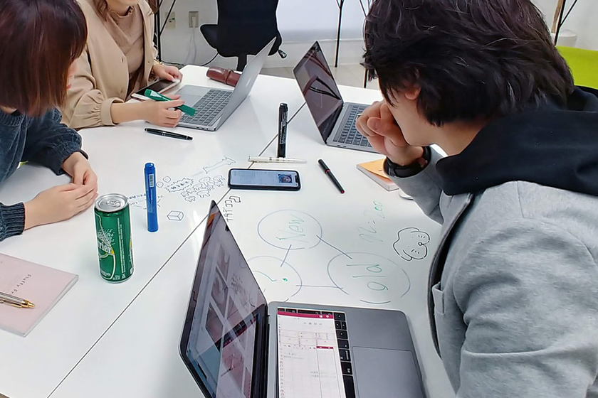 ユニックには、在学中から交流のあった先輩の紹介がきっかけで入社しました。実は、私の他にも日本工学院のデザイン科の卒業生が在籍しているんです。専門学生の頃、先輩に誘われてユニックの社外向けイベントやインターンに参加しました。インターンでは実際の業務に近い体験ができ、プロのデザイナーからデザインに対する考え方や技術などを学ぶことができました。そのときに会社の雰囲気や先輩がどんな仕事をしているかを知って、パッケージデザインの楽しさや魅力に気づき、「ここで私もデザイナーとして働きたい!」と思ったことが現在につながっています。