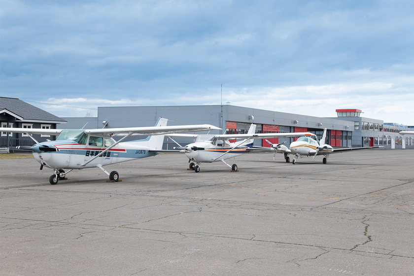 広い敷地内には10機もの実機があり、実習に適した環境が整っています。