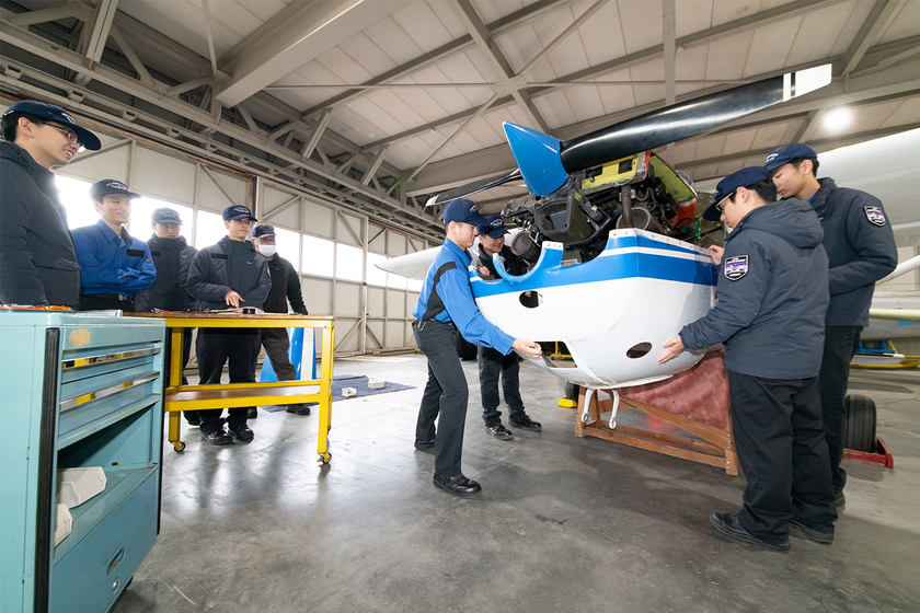 レベルの高い航空整備士を育成するため、学生たちには点検・整備を中心に多くの体験をしてもらいます