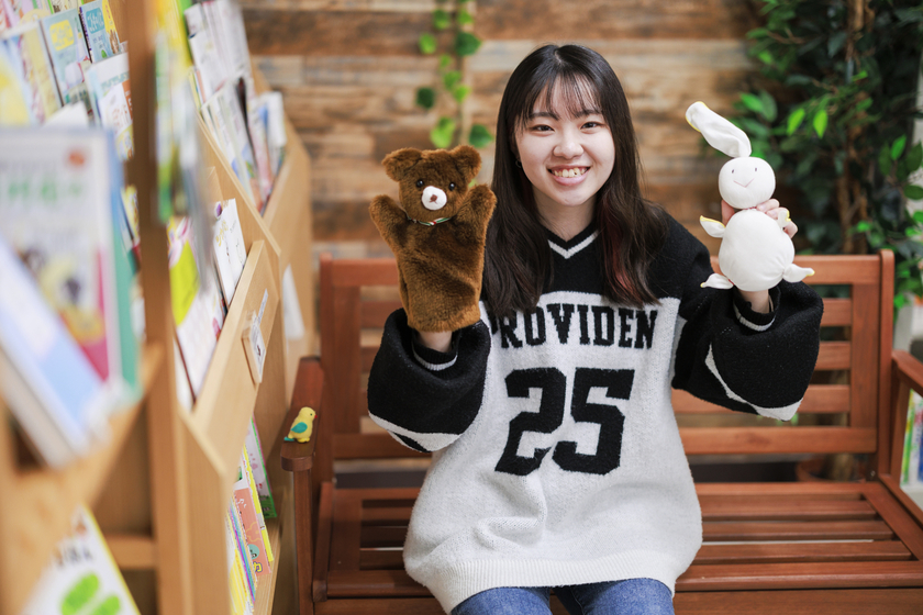 この学校では「認定絵本士」が取得できます。絵本の奥深さが学べる、現役の保育士も目指す資格です。「ゼミナール」の授業では自分たちでおもちゃを作って、保育園で子どもたちに遊んでもらうなどの経験ができます。