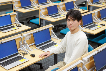 パソコンを使った課題制作の授業は、自分のアイデアを自由に巡らせカタチにすることが楽しくて好きです。空き時間や放課後は、パソコンやタブレットで個人的な創作をしたり友人と趣味などの話をしたりしています。