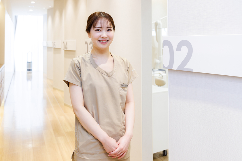 安永矯正歯科医院/歯科衛生士科/2020年卒/「博多メディカル専門学校では、同級生は同い年の人だけではなく、社会人を経験したクラスメイトや県外出身者も多くいました。私自身が県外出身で一人暮らしをしていたので、県外のクラスメイトとよく一緒にお互いの家で勉強をしたり、カフェに行ったりして、勉強以外にも楽しい時間が過ごせました。歯科衛生士は患者さんと一対一で関わることになるので、患者さん第一でしっかりとコミュニケーションをとり丁寧に治療をすることが大切だと思います」と、熱く語ってくれました。