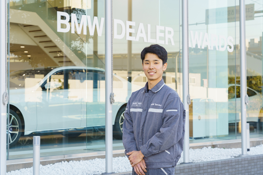 『モトーレン阪神』ではBMWやMINIに関する幅広い事業を行っており、私は自動車整備士として車検や点検をはじめとする業務を担当しています。この職場では多様な考えを持つ人々が活躍しているため、日頃から先輩や他業種のスタッフと積極的にコミュニケーションを重ね、見識を広げることが私のこだわり。その経験が整備を担当したお客様への説明に生かされた時には、大きなやりがいを感じます。クルマを愛する自分にとって、自動車業界の中で多くの笑顔に出会える毎日はとても幸せです。現在は車と向き合う業務が中心ですが、いずれはお客様と身近に関わることのできる立場へと成長し、さらに多くの感動を味わいたいですね。