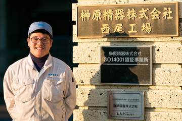 私が勤める榊原精器(株)は、アルミや鉄、ステンレスなどの金属素材を使って、自動車部品から産業用ロボット部品、家電部品、コンプレッサー部品などを素形材の手配から切削加工まで行っています。会社名や業務内容から堅苦しいイメージはありますが、入社してみると和気あいあいとした雰囲気で、良いモノをつくるために、全員で頑張る姿勢が気に入っています。そんな会社だからこそ、私は、もっとこの会社に貢献したいと思っています。そのために技術力の向上は欠かせません。先日は3次元測定器の講習会を受講しました。こうした勉強会にも積極的に参加させてもらえるので、多くの技術を身につけて早く一人前になりたいです。