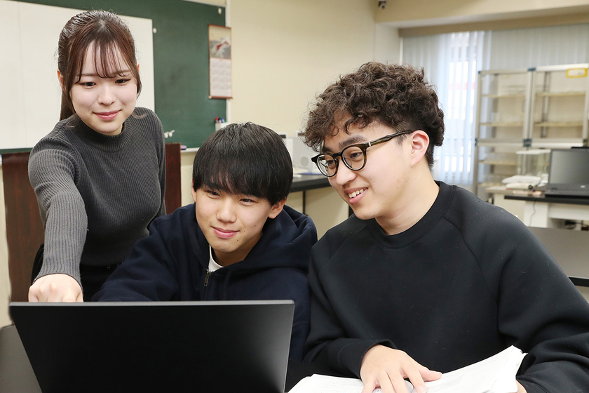 タンパク質や脂質はどうやってつくられているのかなど、生体内で起こる化学反応について学んでいます。高校で化学を詳しく勉強してこなかった人でも、1から順序立てて教わることができるので大丈夫だと思いますよ。少人数制なので、男女関係なくクラスメイトとは仲良し。先生との距離も近いので、何でも相談できます。