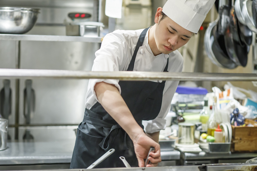 他の調理師養成校は入学時に学びたい食のジャンルを決め、その分野だけを学ぶ学校が多いと思いますが、名古屋調理師専門学校では日本、中国、フランス、イタリアと幅広いジャンルの料理について学びます。様々な料理を学んだ上で自分の進みたいジャンルを決めることができるのが名調の魅力だと思います。また、それぞれの料理に「師範」と呼ばれる先生がいることに加え、自分のお店を持っているこの学校の卒業生の方を講師として招き、その方々から学ぶこともできます。現在の仕事に役立っていると感じるのは「レストラン実習」です。原価計算をしてどれだけ利益が出るかどうかを考え、材料を揃えて実際に調理したことは良い経験になりました。