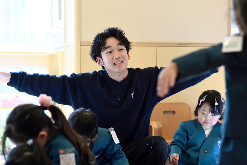 授業は午前中で終わるので、午後の時間は名古屋厚生会館第一保育園(名古屋市西区)で保育補助の仕事をしています。授業で学んだことを園での仕事中に振り返ることができたり、こどもたちの動きで「ああ、なるほど」と思うことも多くあります。実践的な学びになっています。