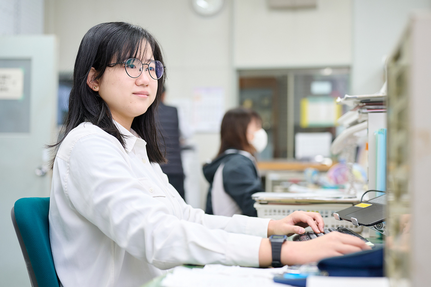 愛知県立蒲郡高等学校勤務/公務員科 卒/2023年卒/高校3年のころに地元や県民に貢献できる公務員という仕事に興味を持った。公務員試験合格のための教育プログラムが充実したELICビジネス&公務員専門学校に進学し、在学中は「目標の公務員試験に合格できたことに加え、パソコンやビジネスマナーなど就職後に役立つビジネススキルも磨くことができた」と話す。正確かつ迅速に仕事をするのがモットー。