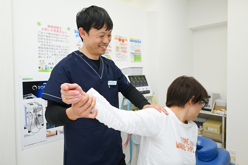 中学・高校・大学とサッカーに打ち込む中で負ったケガに施術をしてもらった経験と感謝から、この分野を目指しました。関わる選手や患者さんのことは大切な家族だと思っています。症状だけでなく、その人の生活や心情にまで目を向けて、痛みや不調を一緒に悩み、改善・完治すれば一緒に喜んでいます。また私は病院のリハビリ部門での臨床経験があるので、近隣の医療機関と連携し、退院後のケアの継続、反対に病院での治療や入院の調整なども行っています。鍼灸接骨院は患者さんの受け皿や医療機関へのナビゲーターといった地域医療の一角を担うことも重要だと考えています。