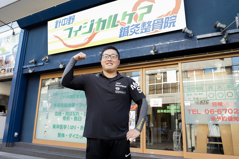 大阪市内に「針中野フィジカルケア鍼灸整骨院」を開業。ずっと思い描いていたトップアスリートをサポートできる施術院として、世界大会メダリストの清水希容選手をはじめ、プロボクシングや柔道、トレイルランニングなど様々な分野で活躍されている方々の施術からコンディショニングまでを担当しています。特殊な施術機器を揃え、少しでも早くケガを治したいという要望にも応えています。患者さんが好成績を収めた時は、自分のことのように嬉しいです。