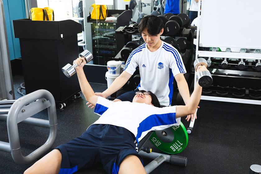スポーツ関連の学科がそろう本校では、学内にスポーツクラブ並みのマシンルームやスタジオ、トレーニングルームなど最新の設備を完備。授業で使用するだけでなく、放課後には自由にトレーニングすることも可能です。また、実習が充実しており、実習先も業界のトップチームや大手のフィットネス企業など、産学連携で貴重な体験ができるのも大きな魅力です。