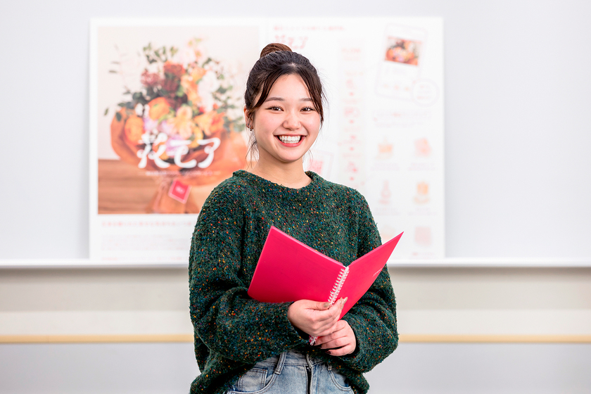 デザインに加え、企画も学べるのが『企画デザイン学科』の最大の魅力です。先輩の作品を見て「スゴいなぁ、ステキだなぁ」と心の底からそう思いました。ぜひ一度オープンキャンパスに来て、楽しさを感じてください!