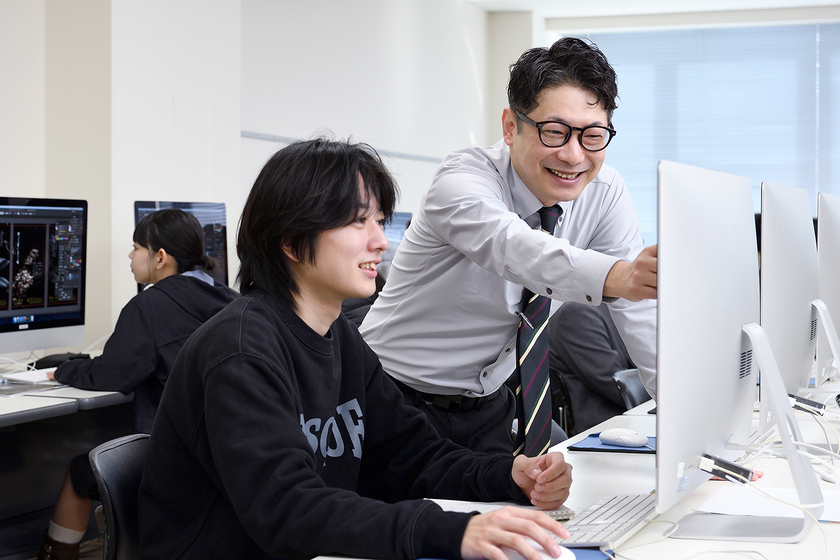 皆さんの「絵が好き」という純粋な気持ち。創作を続ける上で一番大切ですが、時には困難も伴います。そんな時「辛い」と感じるか「それでも楽しい」と思えるかで道は大きく変わります。またAI技術が発展し、技術力(認知能力)だけでは差別化が難しい今、武器になるのは粘り強さや共感性、創造性といった<非認知能力>です。私は自身の漫画家だった経験と、就職担当としての知見を活かし、「好き」をプロの現場で通用する「強み」へと成長させる指導を行っています。学生一人ひとりに寄り添い、卒業まで伴走するモチベーターとして、皆さんの唯一無二の武器を共に育んでいきたいです。