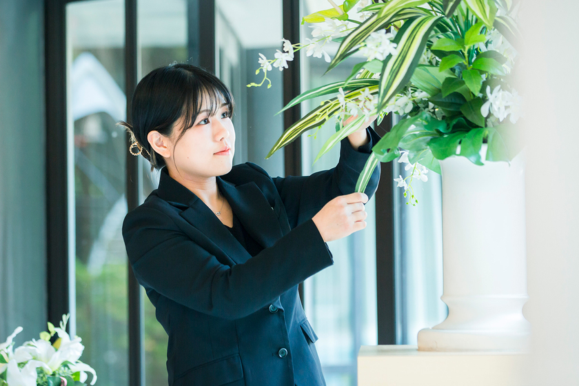 お客様が抱く装花のイメージを、会場やドレスに合わせてご提案していくことが私達の仕事。お客様の人生の中でも大切な一日となる結婚式を、ステキな空間に彩るお手伝いができることが一番のやりがいです。挙式・披露宴を予定されているお客様とは、ゼロからどのような装飾にするかを話し合いながら決めていくのですが、お花にあまり詳しくないお客様が多くいらっしゃるので、予算なども考慮しながら「なぜその花を提案するのか」という理由も含めてご説明していくのは、実際にやってみると大変なこともあります。一方で当日、会場の花を嬉しそうにご覧になるお客様や参列者の方々の笑顔を見ると、本当にこの仕事を選んでよかったと思っています。