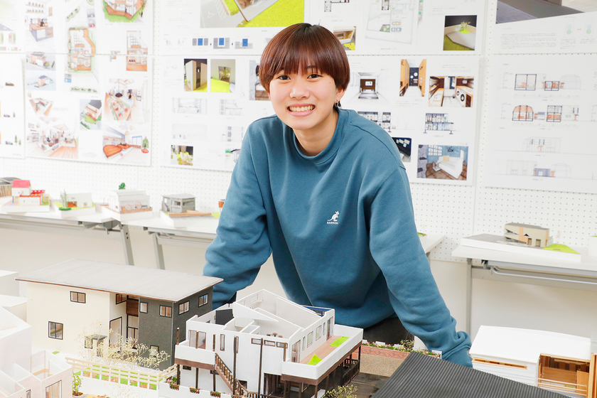 理工学系での進学を考えていた際、家から通える範囲にこの学校があるのを知りオープンキャンパスへ。模型を作る模擬授業が楽しく、昔から絵を描くのも好きだったことから、建築を本格的に学んでみたいと思いました。