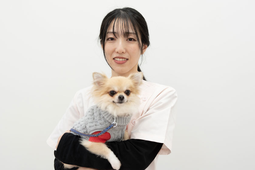 私は2年生のトリマーコース、動物看護師コースのトリミング指導を担当しています。1年次にトリミングの基礎を身に付け、2年次はさらに技術を深め就職を意識しなければならない時期なので、卒業後を意識した実習になるように心がけています。トリマーコースは、トリマーとして働く生徒がほとんどなので、就職後に立派なトリマーとして立てるように、動物看護師コースは、1年後に行う卒業検定に向けての技術向上と、トリミングの楽しさをアップできるように日々の実習を行っています。技術に加えて、社会に出て困らないようにマナーや礼儀も実習のなかで伝えています。トリミング技術はもちろん、社会人としても『この学校で学んで良かった!』と思ってもらえるように、私も全力で生徒と一緒に取り組んでいます。