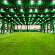 ![]() 人工芝敷きの屋内練習場の他、トレーニングルームやブルペンもあるスポーツアリーナ。 |