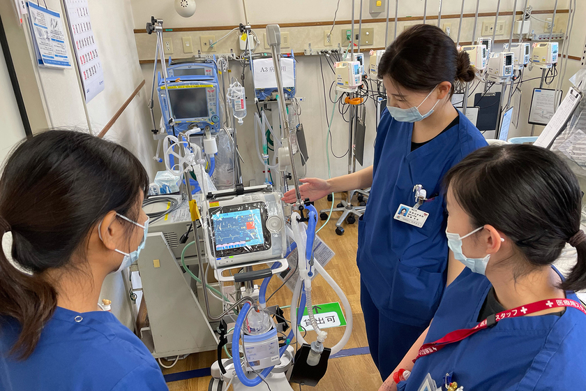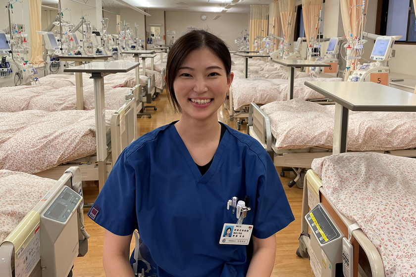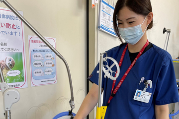 医療機器のスペシャリストとして透析業務や人工呼吸器、院内にある医療機器の操作や保守点検を行っています。チーム医療の一員として命に携り、患者さんの「ありがとう」という言葉や笑顔が見れた時は大変だったことも全て吹き飛んでしまいます!患者さんは不安を抱えている方が多いため医師の指導の下、治療と共にコミュニケーションをとりながら不安を和らげることが大切です。そのため「聴く」姿勢を大切にしています。話に耳を傾けることで、不安を和らげるだけでなく、日常生活も見えてきて症状や悩みをより具体的に把握でき、治療に繋げられる場合もあるからです。今後は呼吸器業務や手術室関連業務など幅広い分野で活躍していきたいです!