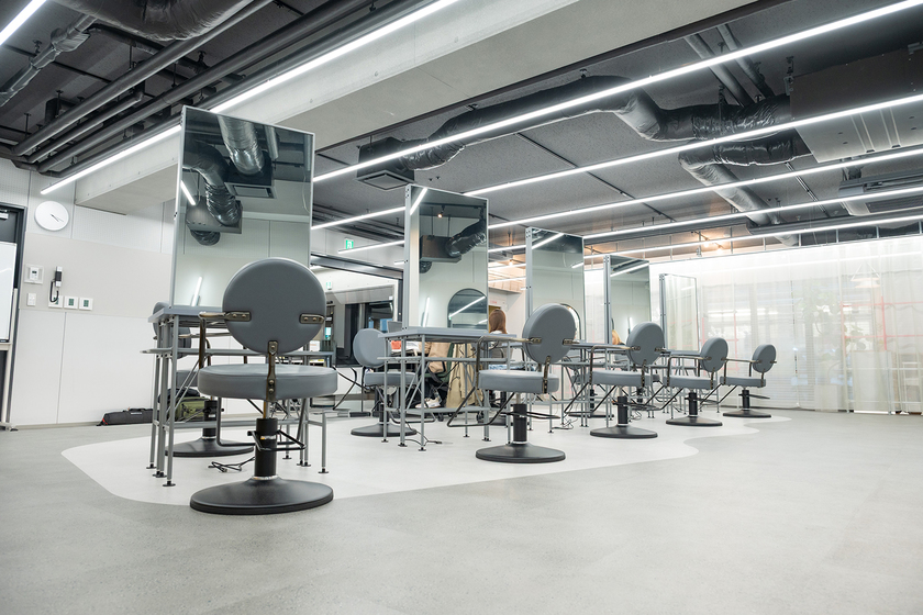 校内にある美容室設備「alpha salon」で実際のお客様に施術し、現場感覚を養う