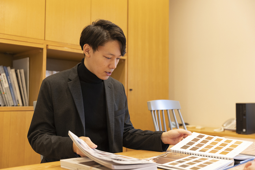 株式会社高田建築事務所/建築設計科・建築設計研究科/2019年3月卒/卒業後、現在の設計事務所を選んだのは、「みんなで話し合いながら家づくりができる社風に魅かれたから」と語る。また将来設計の仕事を志望する後輩たちに対しては「数学と国語をしっかり学んでおいてください」とアドバイス。「計算が多いので数学は当たり前なのですが、仕事をしていて感じるのは国語力の大切さ。お客様と話をする機会が多いので、専門的な話をわかりやすく伝えるスキルや、適切な言葉の選び方、ボキャブラリーの豊富さが欠かせないんです」(丸山さん)。
