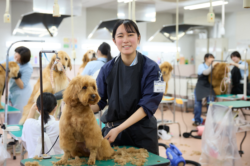 もともと犬を飼っていて、ペットショップで見かけたトリマーの方の姿に憧れて、自分もトリマーを志すようになりました。将来は、人も動物も笑顔にできるような存在になりたいです!そのためにも、知識や技術を高められるようインターンシップやボランティア等に積極的に参加し、多くの経験を積んでいきたいと考えています。