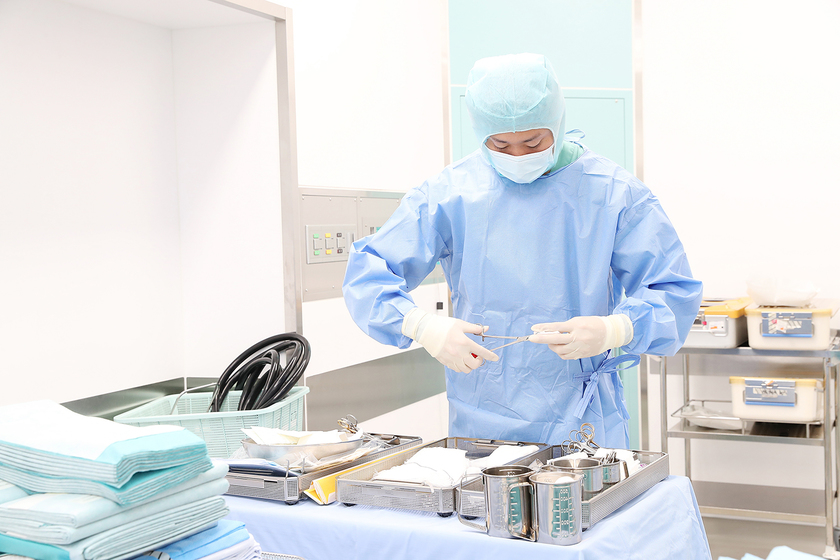 手術前は5分ほど掛けて指先まで入念に洗い、滅菌を行います。