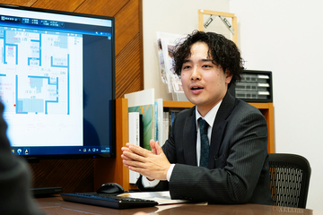 株式会社美都住販 勤務/建築設計研究科/2023年卒/建築設計科で学んだのち、建築設計研究科に進学し、在学中に2級建築士資格を取得。相模原エリアを中心に、新築分譲住宅の販売や注文住宅の建築などを行っている株式会社美都住販に入社する。現在は設計士として、多くの注文住宅を手掛けている。