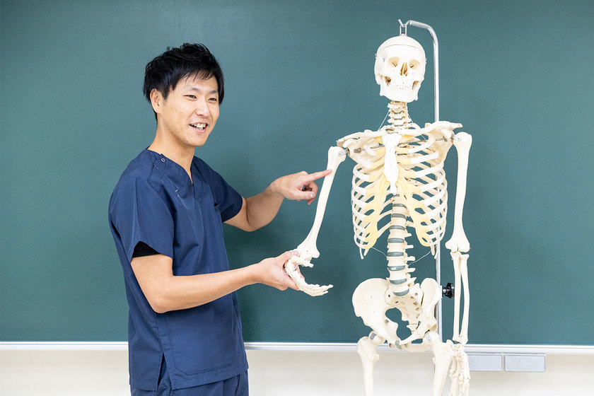 柔道整復師は、自分の手でケガや痛みのある人へ施術をし、その人の復帰に貢献できるやりがいのある仕事。本校には、経験豊富な教員が多いので、その知識と技術を受け継げるよう、土台作りを全力でサポートします。
