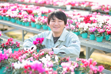 私は、群馬県の花き担当普及指導員として、農家さんに対する栽培指導や講習会を通じて産地振興に携わっています。県の西部地域を担当しており、パンジーやビオラなどの花壇苗やシクラメンなどの鉢花を栽培する農家さんを定期的に巡回しています。現場では、病害虫の相談に対して原因の特定や、使用する農薬を指導する「花のお医者さん」のような役割もあります。もともと花きは専門外で、入庁当初は先輩に教わるばかりでしたが、自分でも花きの栽培技術を調べるなど地道に積み重ねてきました。3年目になり農家さんから「中嶋くんはどう思う?」と頼りにされ、感謝の言葉をいただける機会が増えてきたことが、今の大きなやりがいになっています。