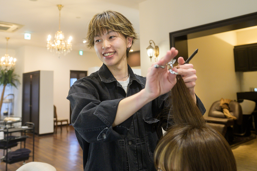 私が勤める会社は、青森県で多くの美容院を展開していて、セミナーを開催する有名な美容師も在籍しています。そんな恵まれた環境で、私は美容師としてお客様のカットやカラーなどを施術し、喜んでいただくために日々がんばっています。仕事で大事にしているのは、“お客様にどれだけ寄り添えるか”です。どんなに良い仕事をしても、親身なサービスがないとお客様には伝わりませんから、常にお声がけや丁寧なヒアリングを大事にしています。お客様の要望にお応えでき、笑顔を見れた瞬間や温かい口コミをいただけた時は1番やりがいを感じます。ヘアケアを通して、人の気持ちまで明るくできるこの仕事は最高に素敵です。