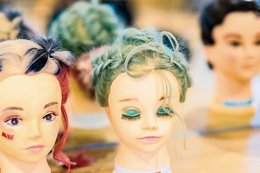 芸能・エンタメに興味がある人にもクリエイティビティなヘアメイクのイメージが湧きやすいと思います。カット・パーマ・カラーの技術を活かしながらオリジナルのデザインを作り上げる授業になっています。