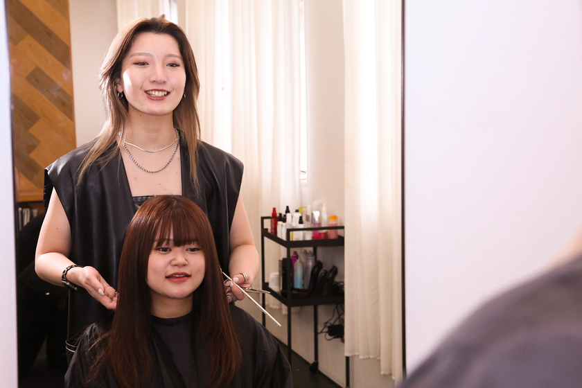 専門学校では、美容の技術はもちろん、礼儀やコミュニケーション能力も磨いていただき、今の仕事にとても役立っています。在学中は、先生方にいつも気にかけていただきました。自分の将来に不安を感じたときも、その他のことで悩んだときも助けてもらい、またいろんなことにもチャレンジできたので、楽しく学校生活を送ることができました。就職活動の際は、ネットやSNSで気になっていたサロンの求人を学校の掲示板で見つけたので、すぐに先生に相談し、説明会や面接に参加して内定をいただくことができました。今の自分があるのも、先生方のおかげだと感謝しています。