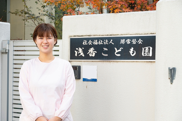 ずっと憧れていた「浅香こども園」に就職し、充実した日々を過ごしています。入職1年目ですが、信頼できる先輩のもと、すでにクラス担当として活躍中。遊びや食事、運動、お片付けなどを通して優しく成長に導くのですが、一人ひとりの表情や仕草が可愛くて、保育の仕事を選んで良かったと毎日実感できます。私は2歳児クラスの担当で、子どもたちの「初めてできた体験」をたくさん共有できるのも大きな魅力。トイレトレーニングで上手くできたときは「やったね!」と笑顔を交わし、保護者の方に報告する際にも喜びを分かち合えます。業務を通してスキルアップし、子どもたちや保護者の方、仲間に信頼される先生になることが目標です。