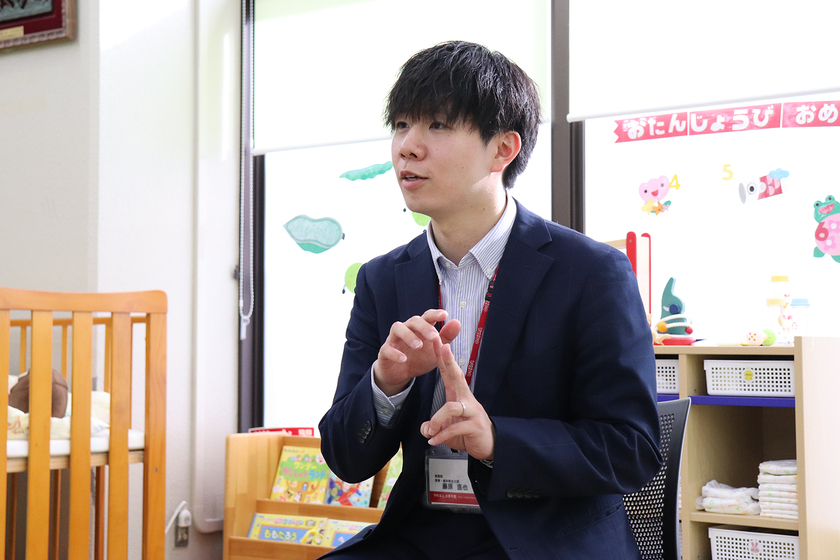 「保育内容健康」「保育内容総論」の授業では、自分の成功と失敗を実例として話しながら取り組んでいます。「保育実技」は、四季折々の工作や行事の準備を学生と実施。さらに「保育実習」では、学生の不安な気持ちを汲みながら課題を明確化し、目標を設定しています。学生自身に考えさせることも重視しており「何を学びたい?」「あなたはどうしたい?」「次はどうする?」といった質問を投げかけては、学生の答えを言語化させています。妻が現役の保育士であること、子どもが2歳であることも、未来の保育士を育てる上で役立っています。