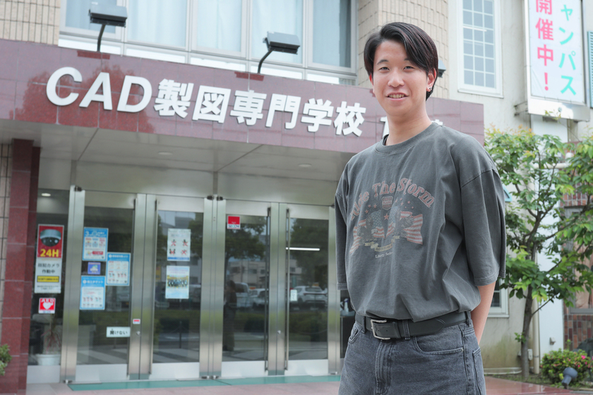 父も建築関係の仕事をしており、仕事の話を聞いて設計の仕事に興味を持つようになりました。建築を学べる学校を探したところ、学費が手ごろなこの学校が自宅から通える圏内にあると分かり、迷わず入学を決めました。