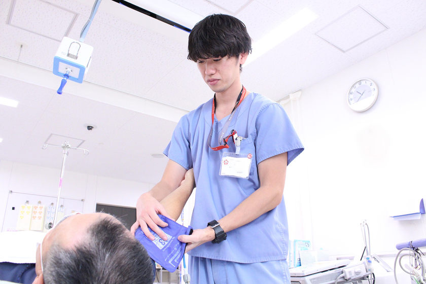 社会福祉法人 恩賜財団済生会支部東京都済生会 東京都済生会中央病院勤務/救急救命学科/2023年卒/消防団員の父、看護師の母の姿を幼いころから見て、消防と医療分野で人を救う救急救命士に興味を持った菊地さん。弘前医療福祉大学へは、国内でも数少ない救急救命・救助に関わる特殊な実習棟を備え、ここでしか学べないことがあると感じ入学した。現在は夢を叶え、医療現場で緊急性の高い重症患者の病院搬送、救命にあたっている。