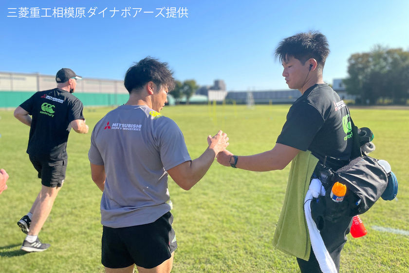 「JAPAN RUGBY LEAGUE ONE」ディビジョン1に所属するラグビーチーム「三菱重工相模原ダイナボアーズ」でアスレティックトレーナー(AT)として働いています。仕事内容は、選手の怪我の応急処置や日常の健康管理、リハビリや怪我を予防するためのトレーニング指導など多岐にわたります。練習中は常にグラウンドを見渡して選手の様子を観察したり、普段からの会話で選手の細かな変化を察知する努力が不可欠に。選手たちのパフォーマンスが向上し、試合で活躍する姿を近くで見られることは非常に大きなやりがいです。何よりチーム全体が一丸となって試合に勝った時の喜びは、何ものにも代えがたい特別な感動があります。