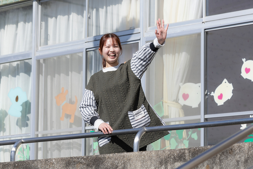 せとっ子ファミリー交流館 勤務/ヒューマンケア学部 子どもケア学科 幼児保育専攻/2020年3月卒/子どもの頃から年の離れた妹や従妹の面倒を見る機会が多く、自然と保育者をめざしたという鈴木さん。大学時代は遊びを研究するゼミナールに所属。さまざまな遊びを考案し、実際に遊んでみながら保育者としての引き出しを増やした。大学4年次に瀬戸市の保育園で現場実習を行った際、保育士の方が子どもにも鈴木さんにもとても優しく接してくれ、保育士同士の関係性や職場の雰囲気もよかったことから瀬戸市への就職を志望。大学の就活合宿やキャリアサポートセンターのサポートを受け、夢を叶えた。