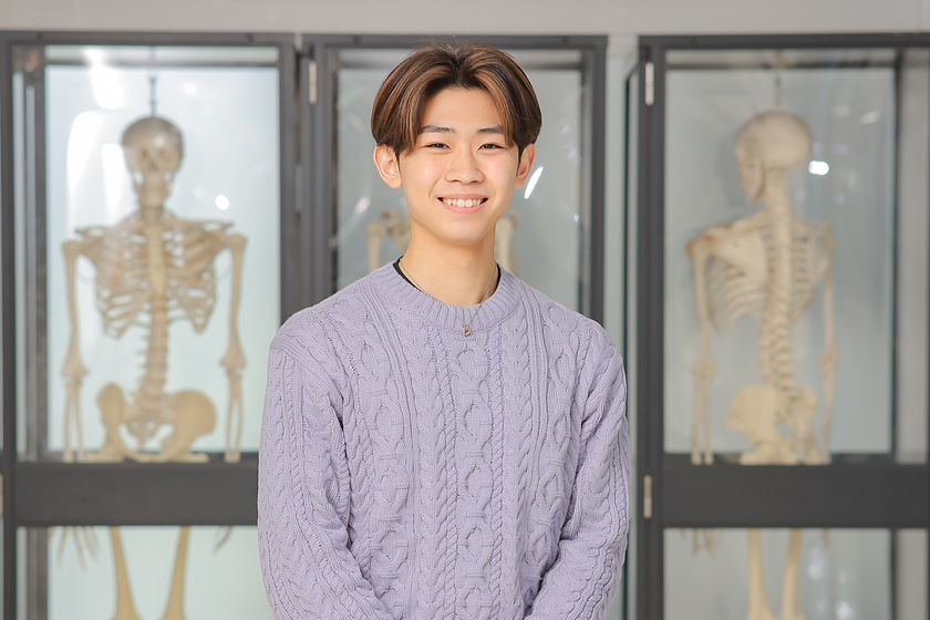 高校のバスケ部でサポートしてくれた柔道整復師の方との出会いが進路選択のきっかけです。怪我をして次の大会出場は諦めていた時、施術法や治療プランを考え、よいコンディションで本番に臨ませてくれたことに感動しました。将来はスポーツチームのサポートと、自分の接骨院を持ち発展させるという2つの夢を叶えたいです。