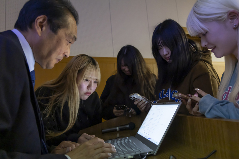 活動報告会で各グループの発表内容について感想を述べている中越先生