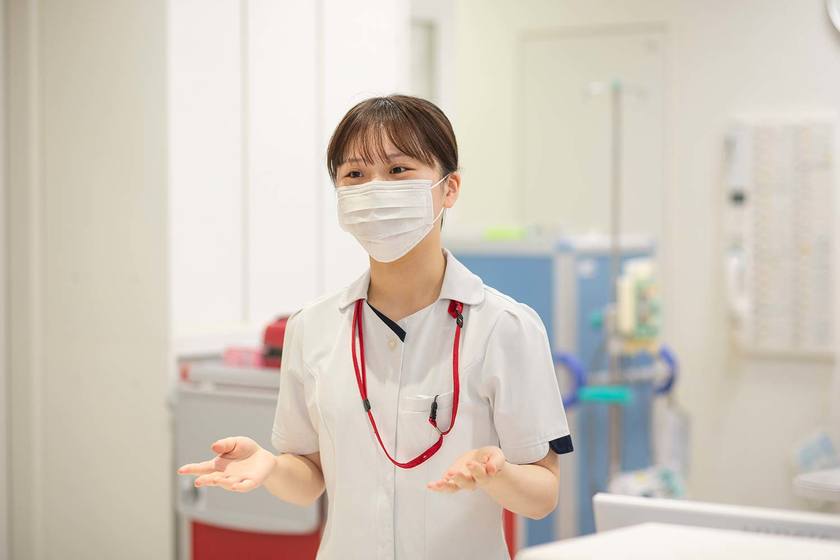 私が看護師を志したのは、命の最前線で誰かの力になれる仕事に強い魅力を感じたからです。看護師である母の話を身近に聞いて育ち、少子高齢化が進む社会の中で看護師が果たす役割の大きさや必要性を実感したこと、そして「人と話すことが好き」という自分の性格を活かして社会に貢献したいと考えたことが、この道に進むきっかけとなりました。総合病院である九州中央病院を志望したのは、レベルの高い医療に触れながら、急性期の現場で着実に看護の基礎力を磨ける環境に惹かれたためです。今後は臨床経験を糧に知識・技術をさらに高め、心電図検定などの専門資格にも挑戦しながら、より的確な判断で命を支えられる看護師を目指していきたいです。