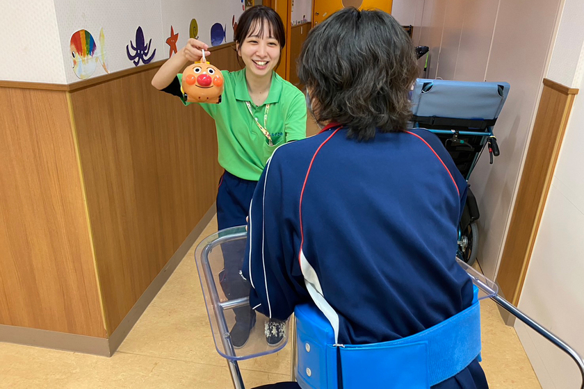 堺市立重症心身障害者(児)センター「ベルデさかい」勤務/理学療法士学科 昼間部/2020年卒/高校3年生の部活道の引退試合前に骨折をした時、理学療法士のリハビリテーションを受け、身体だけでなく精神的にも支えてもらったという中澤さん。以降、自身も理学療法士になる夢を持ち、大阪医療福祉専門学校に入学。学生時代は、豊富な実習を通して専門性を磨いた他、他学科との連携授業で他職種との関わり方も学んだ。