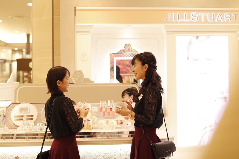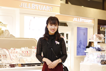 ジルスチュアートのビューティスタイリストとして百貨店に勤務しています。お客様担当として、お悩みに対するアドバイスや、タッチアップメイクを通じて商品の魅力、良さをお伝えしています。ご来店されたお客様が、どのアイテムを購入するか悩まれているときに、お話をお伺いしたうえでタッチアップメイクをさせていただくことがあります。「キレイになった!ありがとう!」と喜んでいただき、商品をご購入していただけたときに「この仕事をしていて良かった!」と思います。また、後輩の指導も担当しています。後輩が接客したお客様が喜んでいる姿を見ると、自分のことのようにうれしく感じます。