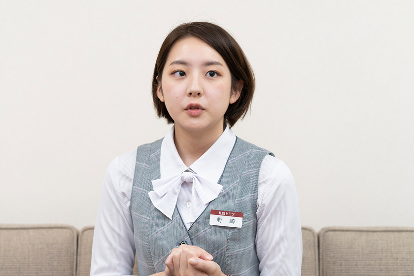 札幌トヨタ自動車株式会社勤務/ビジネスキャリア2年制学科 /2017年卒/明るくインタビューに応えてくれた野崎さんだが「実はすごい人見知りなんです。でも大原で色々な人と交流をしていくうちに、ちょっとずつコミュニケーション力が身につきました。」と。思い出深い学校行事は、北海道にある大原の専門学校が一同に集まるスポーツフェスティバル。「オリジナルの衣装でパフォーマンスを披露するリーダーになり、仲間達と連携して準備をしました。みんなに支えられながら無事に終えられた時は本当にうれしかった」。そして「大原では、色々なことに挑戦する機会を与えてもらい、自分の新しい部分をたくさん発見できました」と教えてくれました。