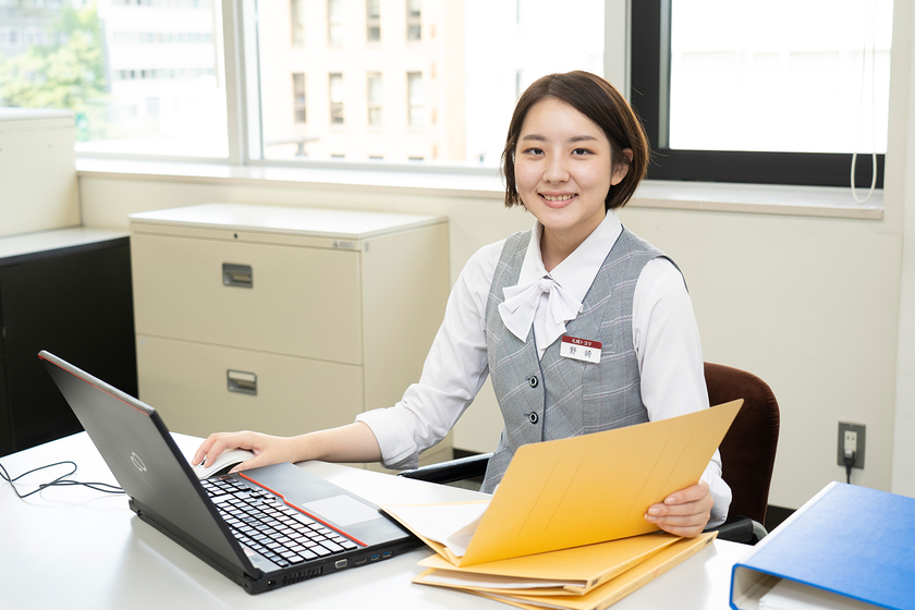 もともと誰かのサポートをするのが好きでした。比較的数字に強いこともあり、自分は事務系・経理系の仕事に向いているのではないかと思うようになりました。高校から簿記やパソコンについて学び、資格もいろいろ取得しました。もっと資格を取得して強みを持ちたかったことと、自分の視野を広げたくて大原に進学しました。オープンキャンパスに参加した時、学校の雰囲気が良くて、ここで勉強したいと思ったのも決め手のひとつ。大原では担任以外に就活をサポートする先生がついてくれます。先生は個性や適性を考えながらアドバイスをしてくれるので、とても心強かったです。何度も面接の練習をしたのは、今となってはいい思い出ですね。